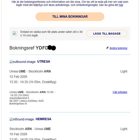 3 flygbiljetter som gäller mellan Torsby och Arlanda eller tvärtom.