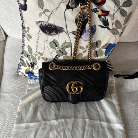 Gucci marmont väska i skinn, bra skick men tecken på användning finns. Skickar gärna mer bilder. Kvitto/box finns ej kvar, men verifiera i guccis butik går såklart.