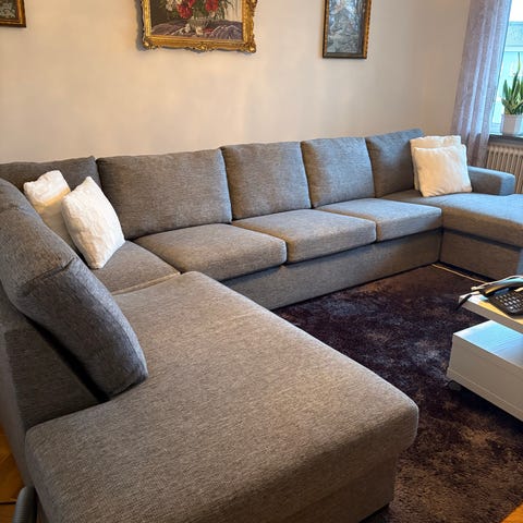 Soffan är i fint skick! Lätt att ta av klädseln för att tvätta.