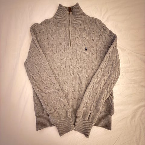 Ralph Lauren Polo tröja i storlek S, grå färg och tillverkad i bomull och kashmir Tröjan är avsedd för herrar och har en klassisk design.