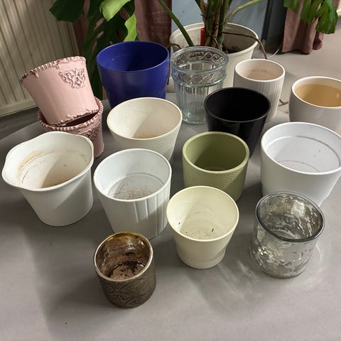 3 större krukor i beige färg.