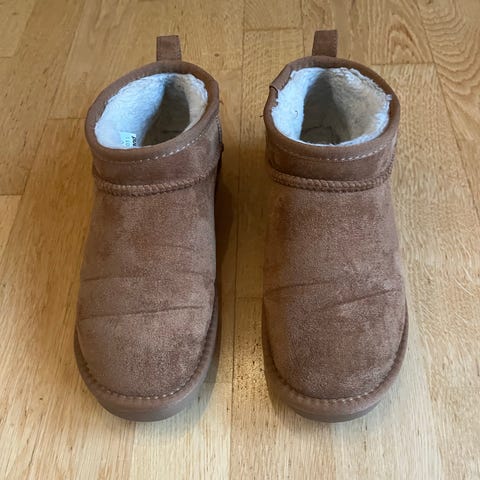 Väldigt bekväma med en mjuk ullig insida. Dragkedjeöppning på sidan.