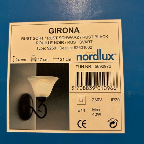 Mio Lindby vägglampa designad Lampan har en svart yttre yta med en guldfärgad insida. Den är avsedd för väggmontering och använder en TG C9 LED-lampa med max 8W, 230V-50Hz. Produkten har IP20-klassificering.