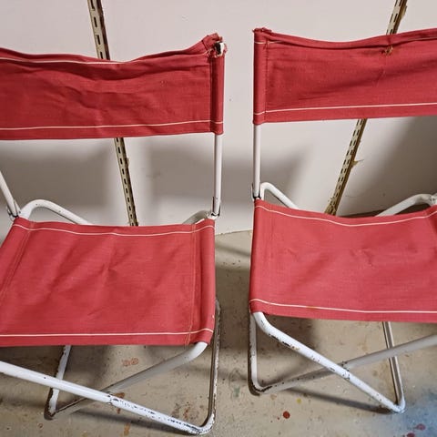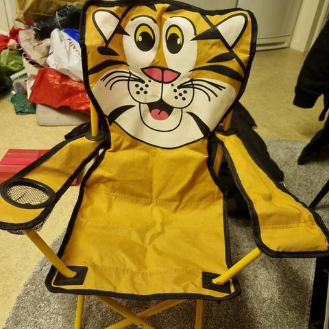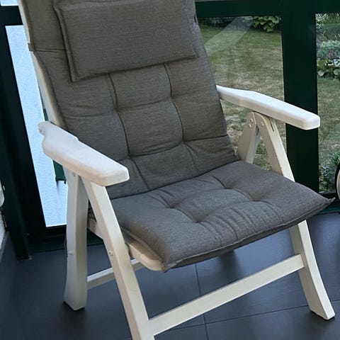 En hopfällbar campingstol eller trädgårdsstol från ÖB.
