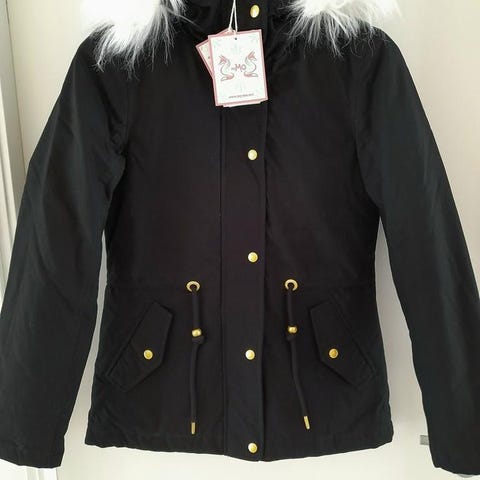 Boohoo vinterjacka i storlek M för dam. Jackan är svart och tillverkad i fuskläder. Den är designad för att ge värme och komfort under kalla väderförhållanden.