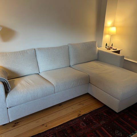Vi säljer vår 3-sits bäddsoffa med schäslong. Den är i mycket bra skick. Vi köpten den för knappt 2 år sedan och har inte använt den så mycket då vi varit mycket bortresta.