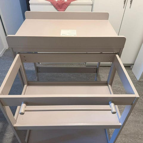 Skötbord och byrå i fint använt skick från Ikea. 2 stora lådor med plats för mycket förvaring och ett praktiskt utfällbart skötbord.