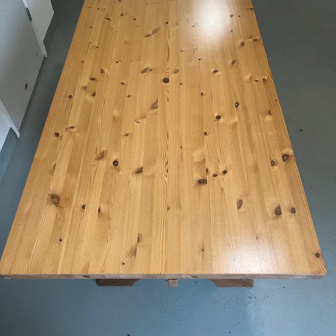 Bord i mörkt trä med robust design och stabil konstruktion. Passar för olika inomhusmiljöer och användningsområden.