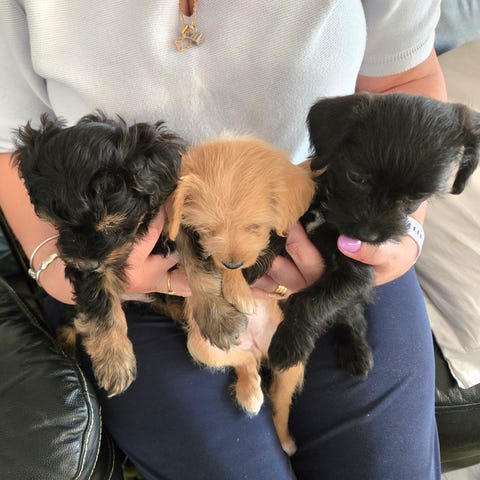 Det medföljer mat som valpen är uppväxt med, leksak o en filt med mammas doft