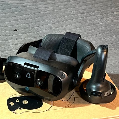 HTC VIVO VR. Runt 4-6st, med väggfäste och sensorer. Och handtaget såklart.