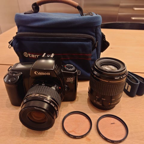 Objektiven har manuella inställningar och är kompatibla med kamerans system. Kameran och objektiven är avsedda för fotografering med film.