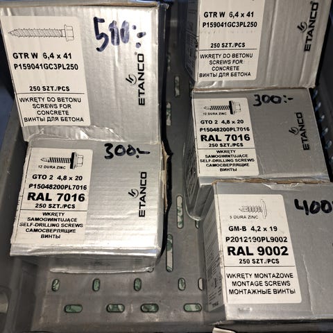 6 förpackningar a 500 st. dyckert varmförzinkade 60-2,3mm, pris per förpackning 125 kr.