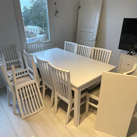 Säljer ett bord med 4 stolar från mio. Fint skick. Finns dock en skavank på en av stolarna se bild.