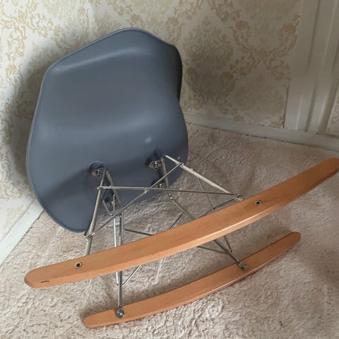 En unik gungstol i form av sen anka. Finns tecken på användning med lite märken här och var. Det har varit en riktigt omtyckt möbel för våra barn och kompisars barn. Ca 75cm hög. 🦆