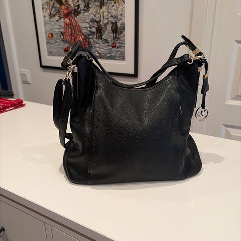 Michael Kors väska i läder, svart färg. Väskan har handtag och avtagbar axelrem samt flera fack och dragkedjor för förvaring. Något avskavt på handtaget och lite fläckig på tyget i botten (se bild), men i övrigt välbevarad.