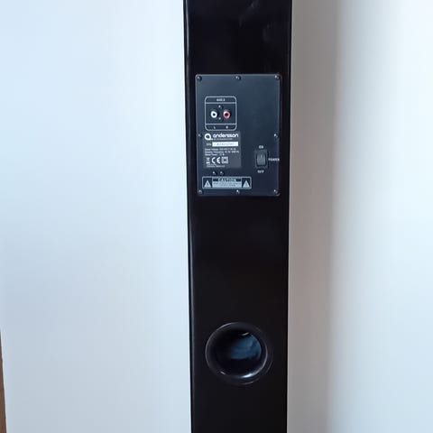 2 högtalare i normalt, felfritt skick. Det finns ett stålstativ för att rikta ljudet lite uppåt. Kanonbra ljud ,inga biljud eller distorsion. Höjd 68, bredd 26, djup 33 cm. Hämtas strax norr om Helsingborg, skickas inte!