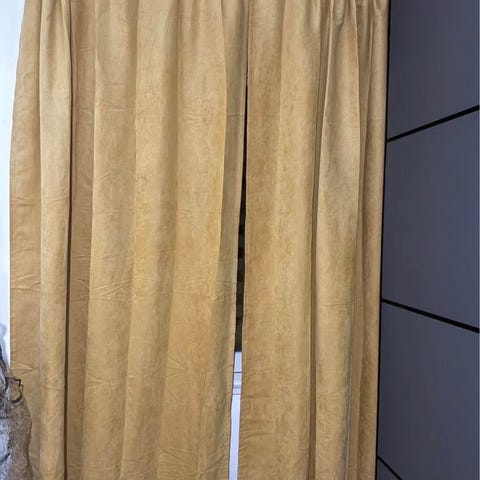 IKEA gardiner i beige färg. Gardinerna är avsedda för att hängas i fönster och bidra till att reglera ljusinsläpp. Mörkläggningsgardiner som inhandlades men blev helt fel hos oss!