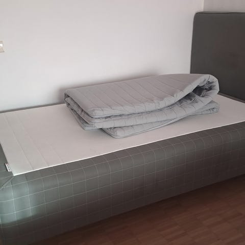 Jysk säng med sänggavel och madrass beige enkel