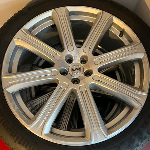 Fälgen är Volvo Original 21" 8-Spoke Silver Diamond Cut Silver. Finns mindre fälgskrap.