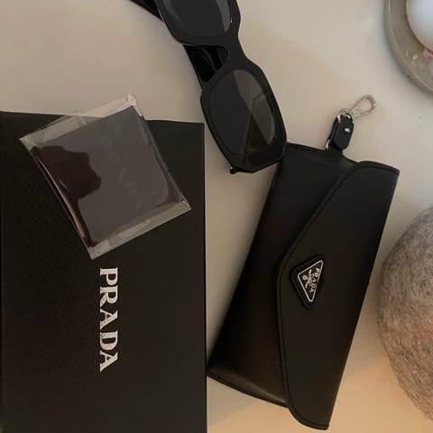 Här säljer jag ett par äkta glasögon från PRADA, med tillbehör. Se bilden. Kan skickas, eller Kan hämtas eller lämna i Malmö.