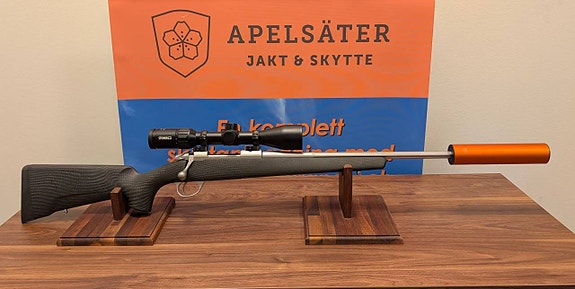 En väldigt fin begagnad R8 Success i grade 7 med kolvkamshöjare, Blaser ljuddämpare, Blaser snabbmontage och Leica Magnus 1,8-12*50i. Bössan är i kaliber 30-06.