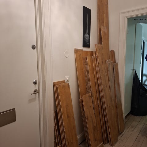 Rustik ekparkett, 1-stav. 190 × 19 cm, tjocklek 14 mm med 3 mm slitskikt. Slipbar 2–3 gånger. Helt ny från fabrik.