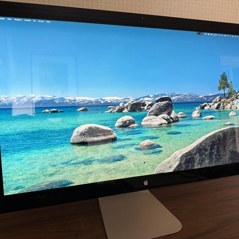 Apple 27-tums skärm med stor skärmyta. Passar för användning med datorer och erbjuder en tydlig visuell upplevelse.