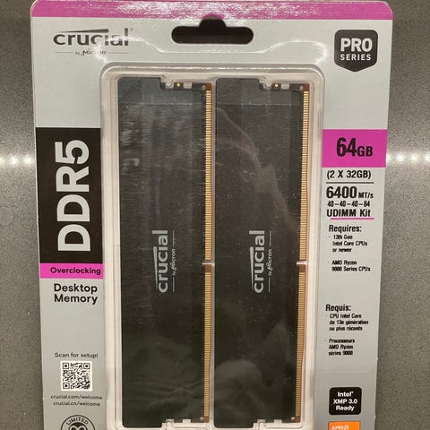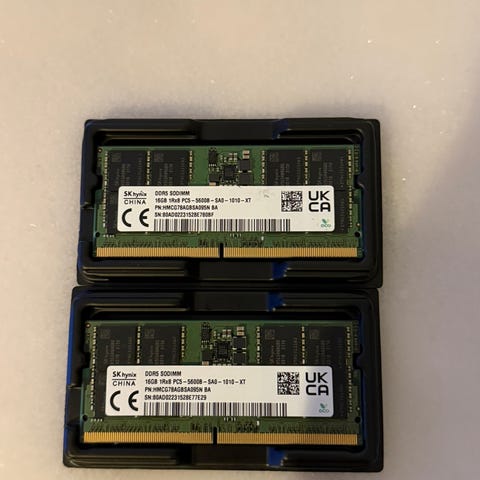 Säljer ett Crucial DDR5 SO-DIMM minneskit på totalt 64 GB (2×32 GB) med hastighet 4800 MHz. Perfekt uppgradering för laptop, mini-PC eller workstation som stödjer DDR5.