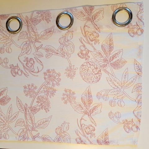 Rusta gardinstänger med gardinkappor med öljetter i beige färg.