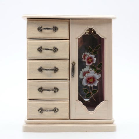 Hexagonformade smyckeskrin med dekorativt mönster och tofs