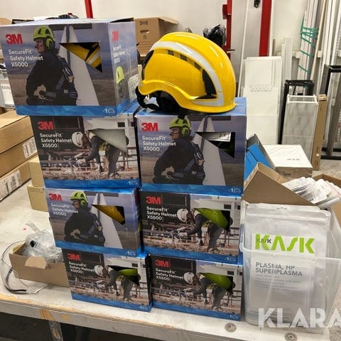 Friskluftmask, hjälm, hörselskydd