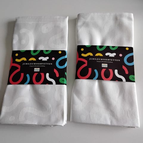 Ett dussin vita restaurang servetter, 50 x 50. Nytt skick, levereras i obruten original förpackning.