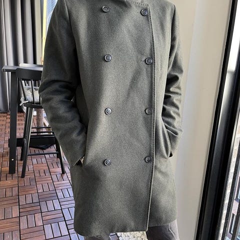 En varm, blå ullkappa av lätt A-modell, äldre. Märke Finn Flare. Hel och knappt använd. Sleif i mörkare blå-ton ingår. Fina detaljer i ärmar och fickor av den mörkare blå . Dold knapprad med synlig knapp överst. Kemtvätt.