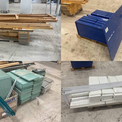 Lagerhyllor samt plåtskåp säljers. 2000kr för allt.