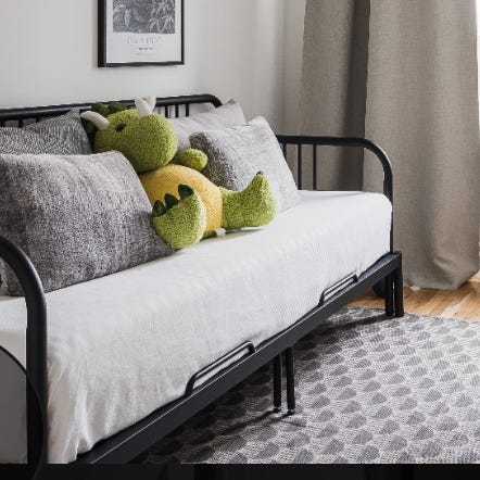 IKEA dagbädd Flekke , vit färg, utdragbar till 2 separata bäddar, två madrasser. Sängen har två utdragbara lådor under för förvaring av sängkläder. Passar som enkel+dubbelsäng eller extrasäng i olika rum.
