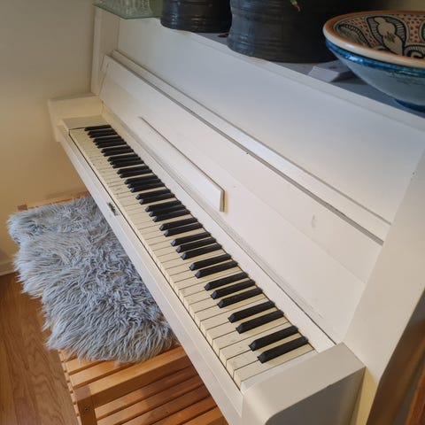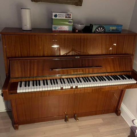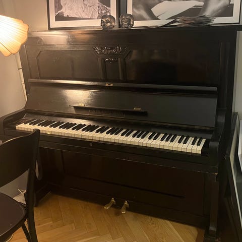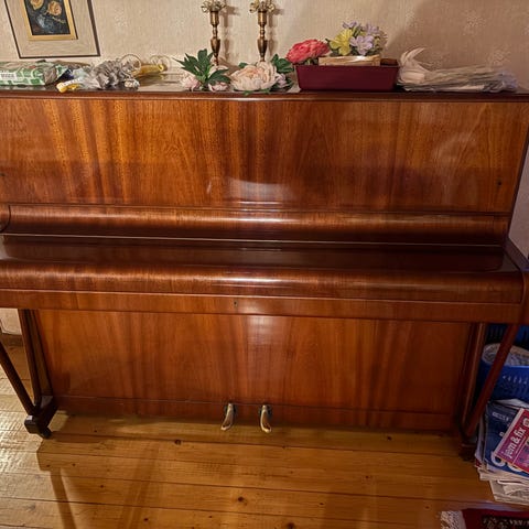 Piano, 50-tal engelskt Kemble. Avhämtning, 7 trappsteg ut till gatan