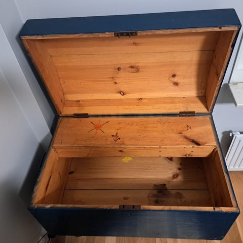 En gammal kista som är i bra skick och perfekt att använda för förvaring.