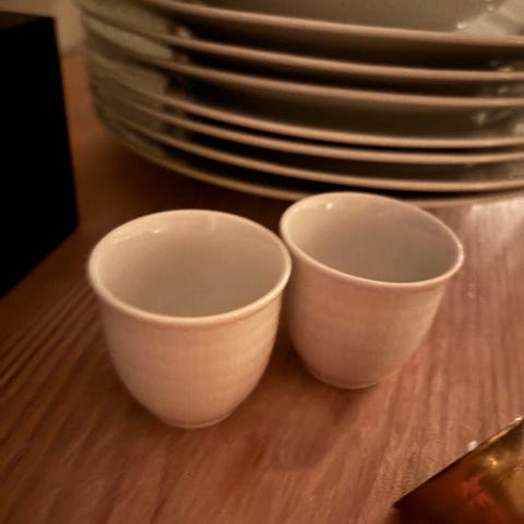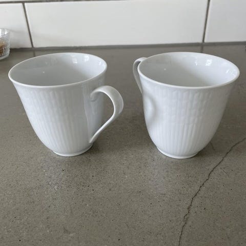 Rörstrand servisdelar i vitt porslin bestående av 3 skålar varav alla med flisa och 2 små äggkoppar (nyskick).