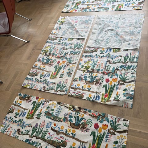 Svenskt tenn tyg med Tulpaner på svart botten. 2 stycken som är ihopsydda, mönsterpassade