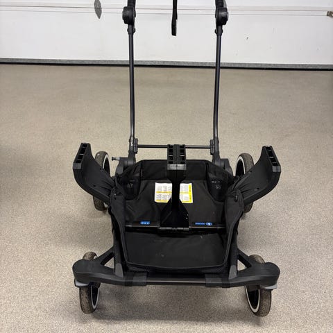 Emmaljunga barnvagnsram utan sittdel eller liggdel. Passar för montering av sitt- eller liggdel från Emmaljunga. Svart ram med hjul, avsedd för barnvagnar.