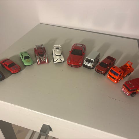 Hot Wheels leksaksbilar i olika modeller och färger. Leksakerna är avsedda för barn och består av små bilar i plast och metall. Säljer allt tillsammans.