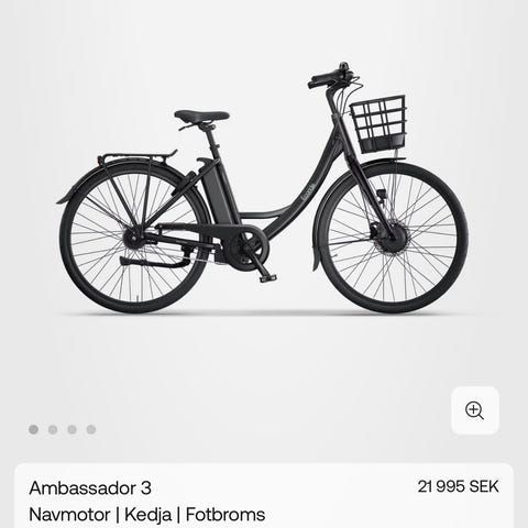 Säljer en Ecoride Ambassador 3 M5 elcykel i bra skick. Cykeln är ca 1,5 år gammal och har gått 864 km. Säljes p.g.a. att min tidigare partner flyttat utomlands och inte ville behålla cykeln.