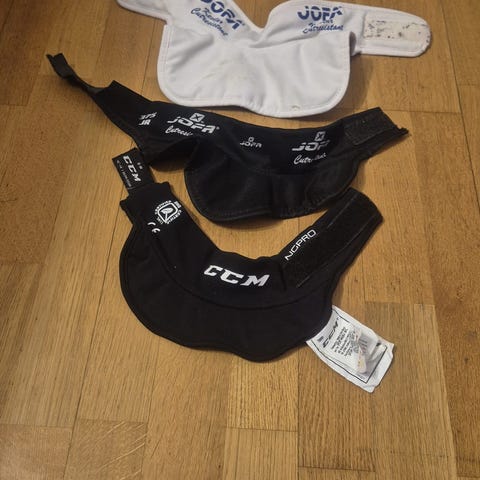 CCM skydd för ishockeyskridskor i blått och rött. Skydden är avsedda för att skydda skridskornas blad och ge ökad hållbarhet.