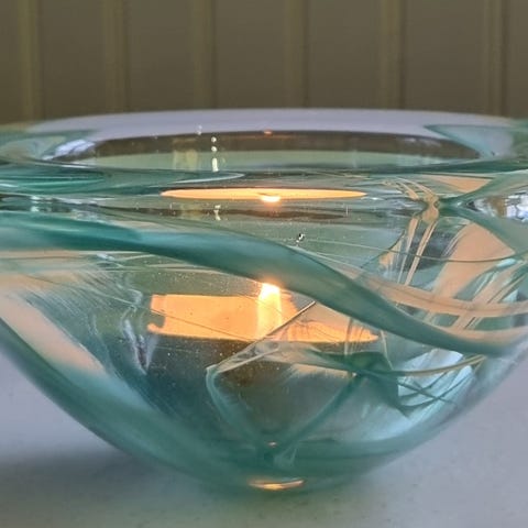 2. Buckigt vitmarmorerat kristallglas ATOLL av Anna Ehrner för Kosta.
