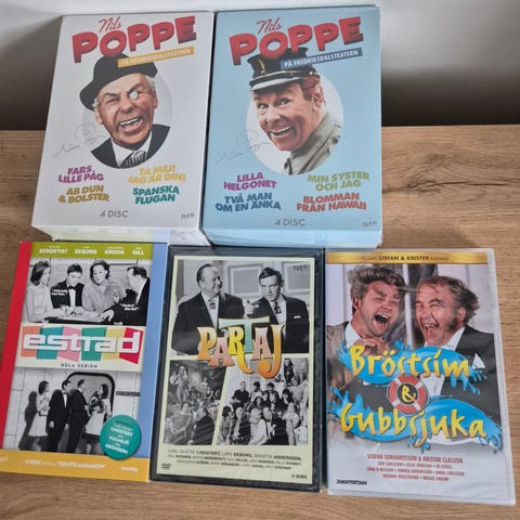 Samling med Sällskapsresan filmer på VHS. Innehåller filmerna: - Sällskapsresan - Sällskapsresan 2 - Snowroller - Den Ofrivillige Golfaren - SOS - Segelsällskapsresan