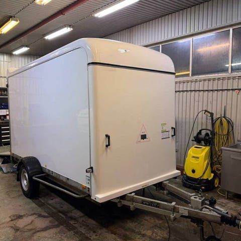 Stort skåpsläp 11 kubik med ramp, mått 165 x 365 höjd 190 cm . tot. vikt 1000 kg lastar 390 kg säljes besiktad och genomgången i vår verkstad , inkl. vinterhjul, pris ex. moms 34320 kr