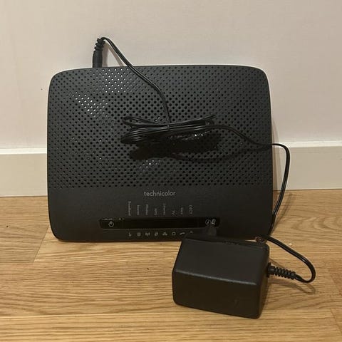 Fungerande Technicolor TG389-router med original strömadapter säljes. Perfekt som enkel router för hemmet, som reserv eller till sommarstugan.