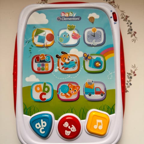 barnleksak i form av en trumma med färgglada detaljer. Tillverkad i plast med olika knappar och former för lek och stimulans. Passar för små barn och kan användas för att utveckla motorik och ljuduppfattning.