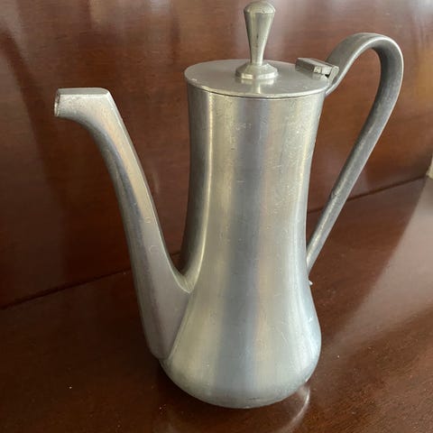 En rejäl och praktfull ölsejdel i tenn med dekorerat handtag.