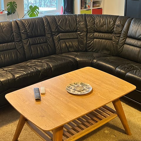 Vacker lädersoffa med fåtölj